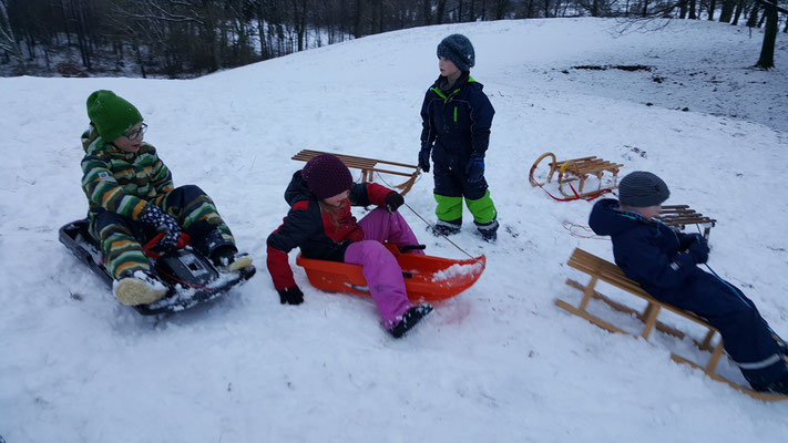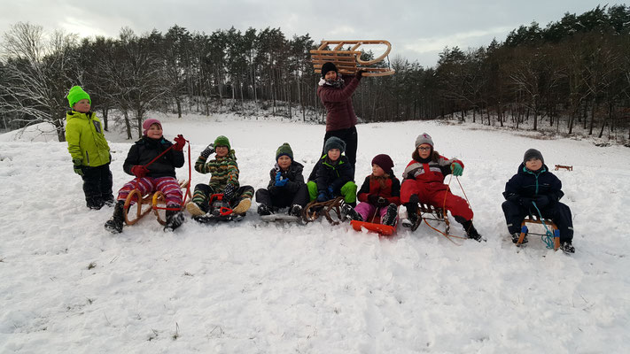 und viel Schnee rodeln. Die Berge mit dem Schlitten runter rasen, hat fast immer bei allen gut geklappt. Manchmal wurden wir auch in den Schnee abgeschmissen, aber es ging gleich wieder weiter.