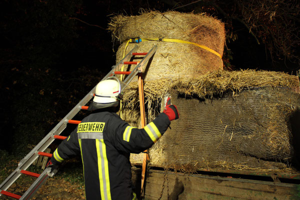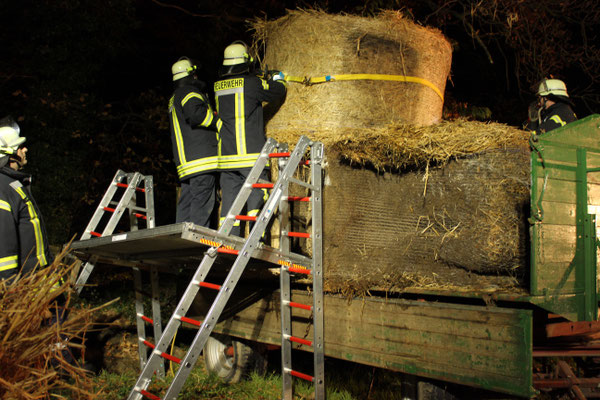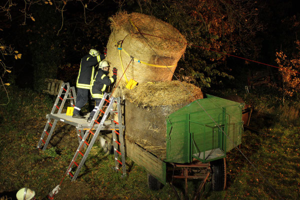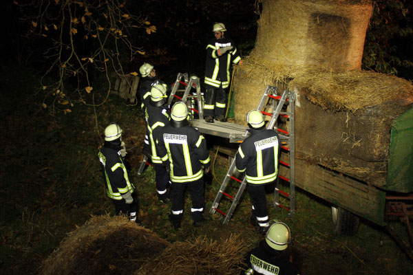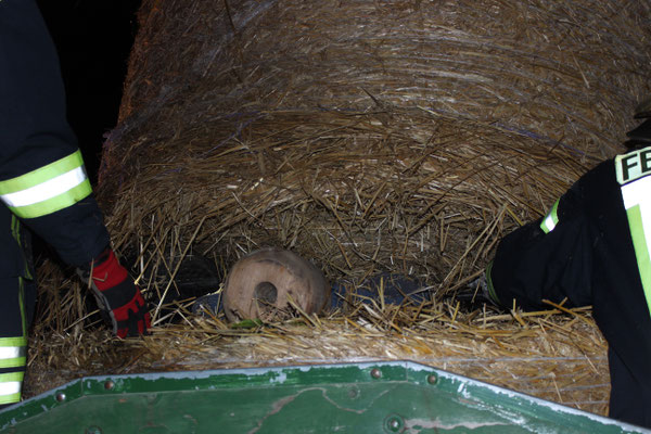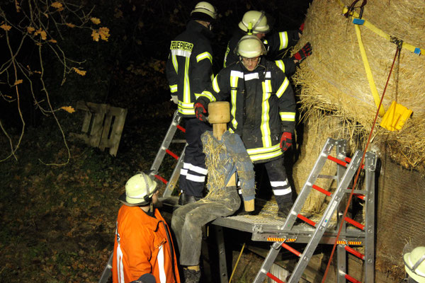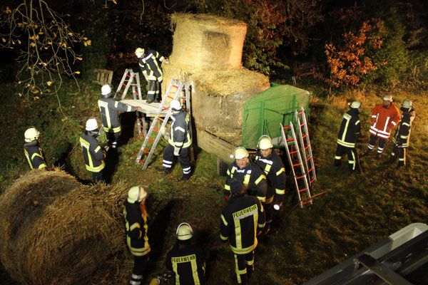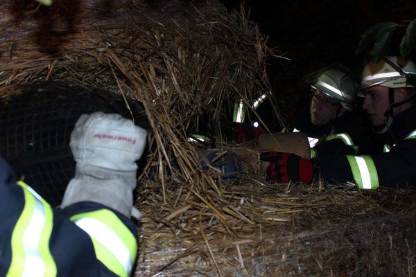 vermisst“. Ein Szenario, das die fünfte Gruppe vorbereitet hatte. Eine Person war zwischen vier großen Rundballen eingeklemmt und musste möglichst schnell, aber sicher, von der großen Last