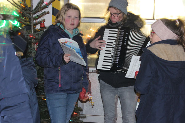 Sack mit vielen Leckereien für jedes Kind dabei hatte. Begleitet von Akkordeonmusik wurde anschließend für den Ehrengast ein paar Weihnachtslieder als Dankeschön gemeinsam gesungen. Die Feuerwehr